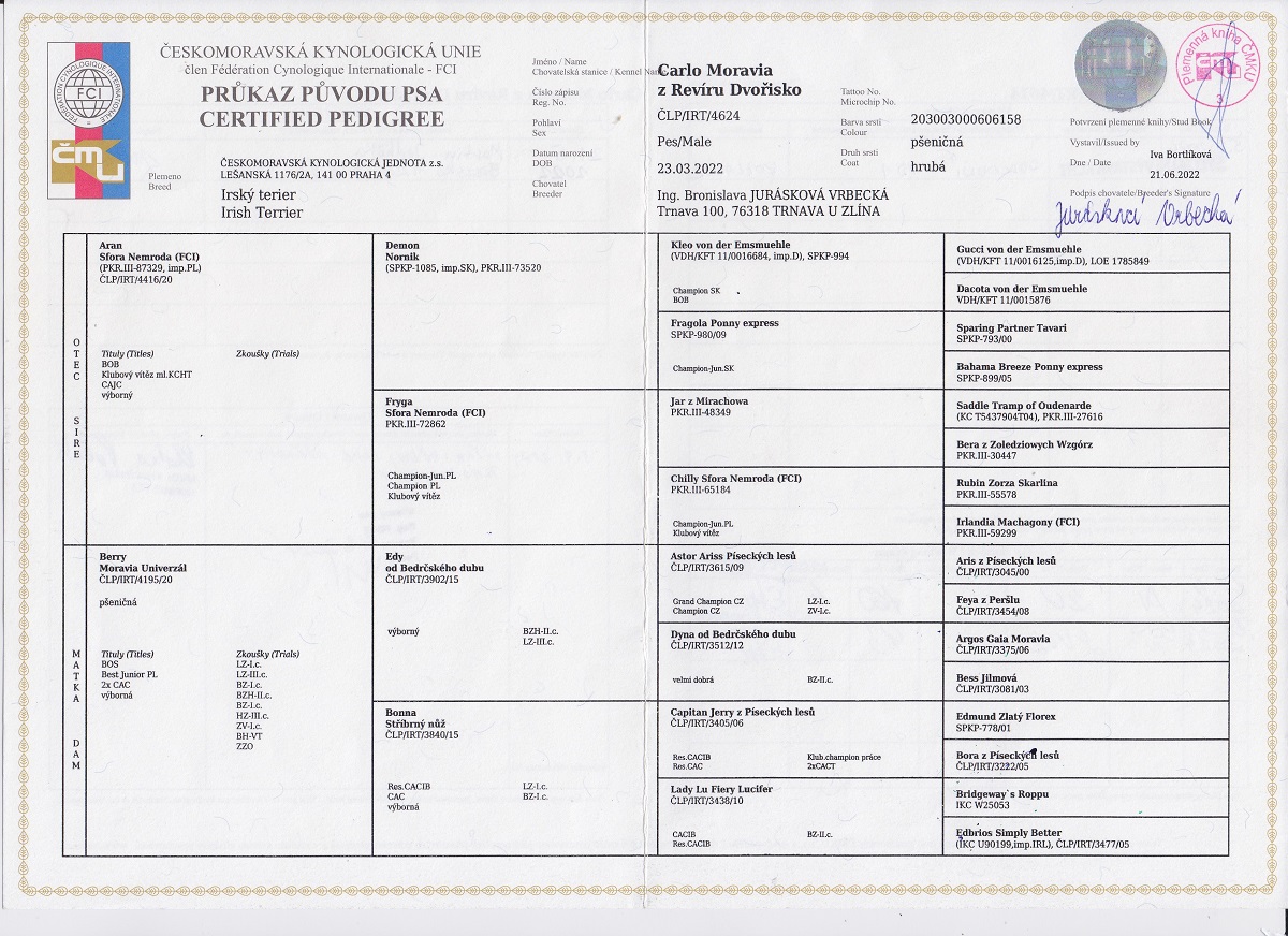 Datum | Výstava | Rozhodčí | Třída | Ocenění |