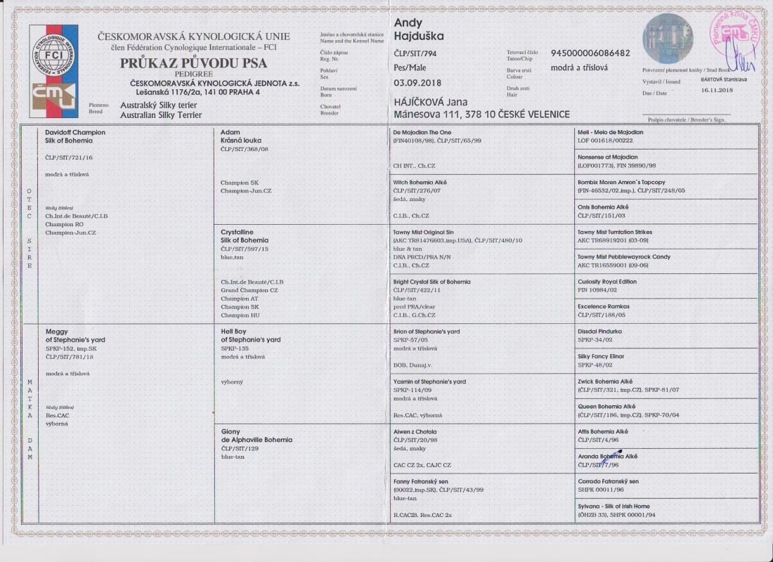 04.09.2021 | Národní (CAC) Olomouc/CZ | Miroslav Václavík/CZ | otevřená | V1, CAC, Národní vítěz, BOB /10 b. |
