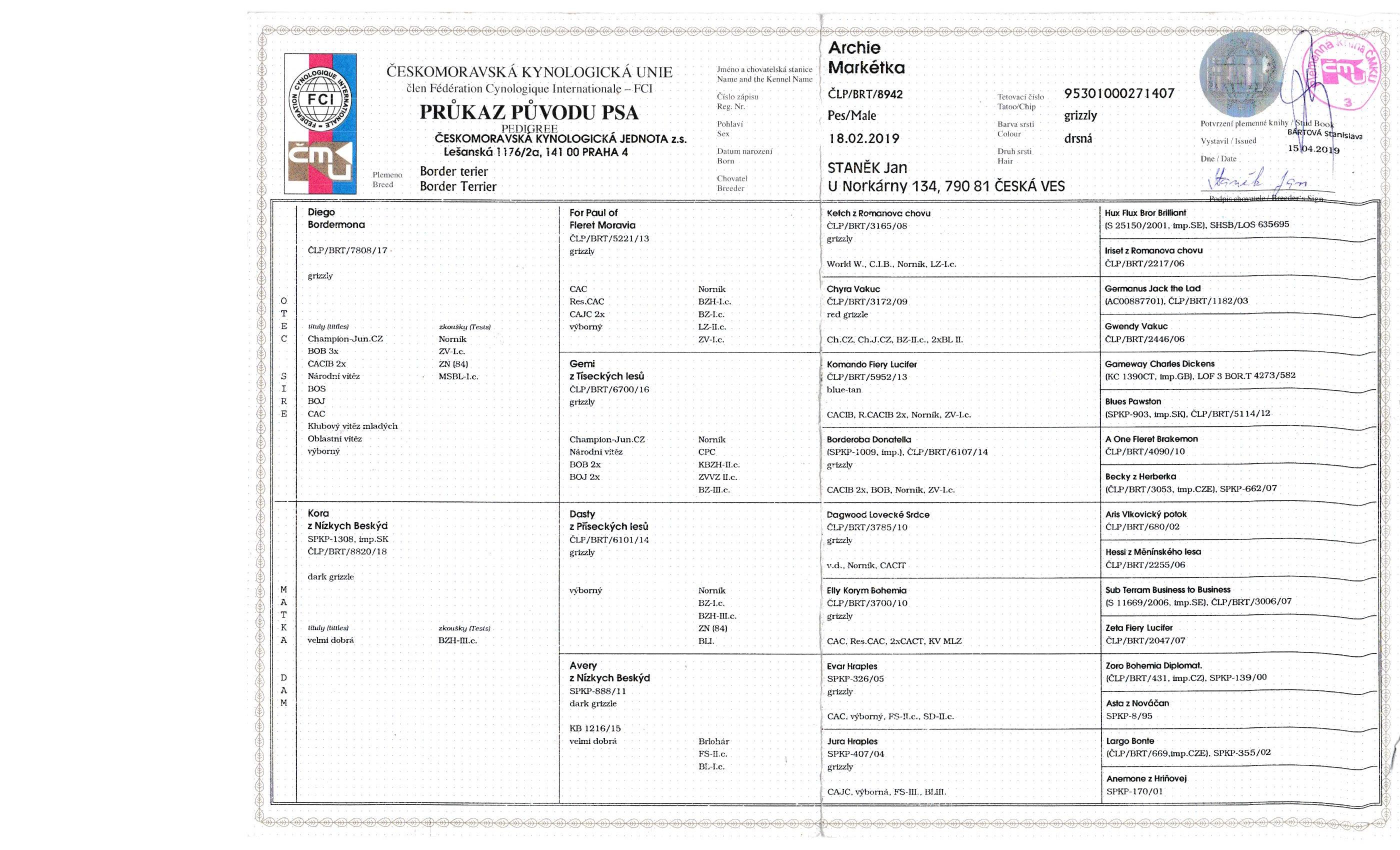 Datum | Výstava | Rozhodčí | Třída | Ocenění |