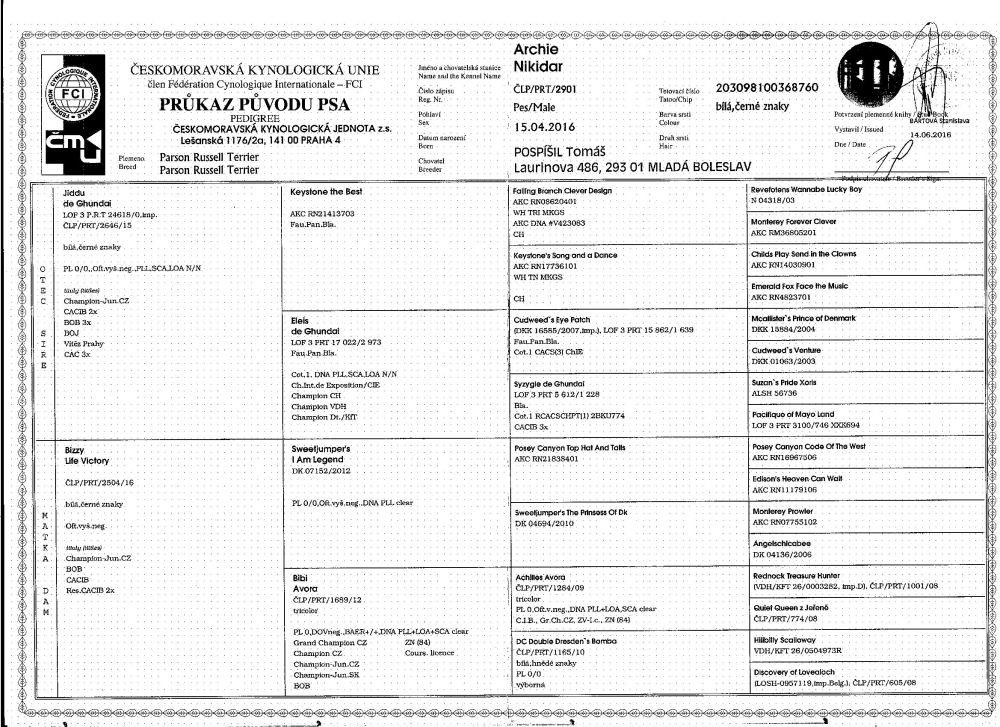 Vítěz třídy, x CAJC, x CCJ, BOJ, BOB, Krajský vítěz, Klubový šampion mladých, Český junior šampion, Oblastní vítěz, Res. CAC, CAC,CC, Národní vítěz, BOS ,CH CZ