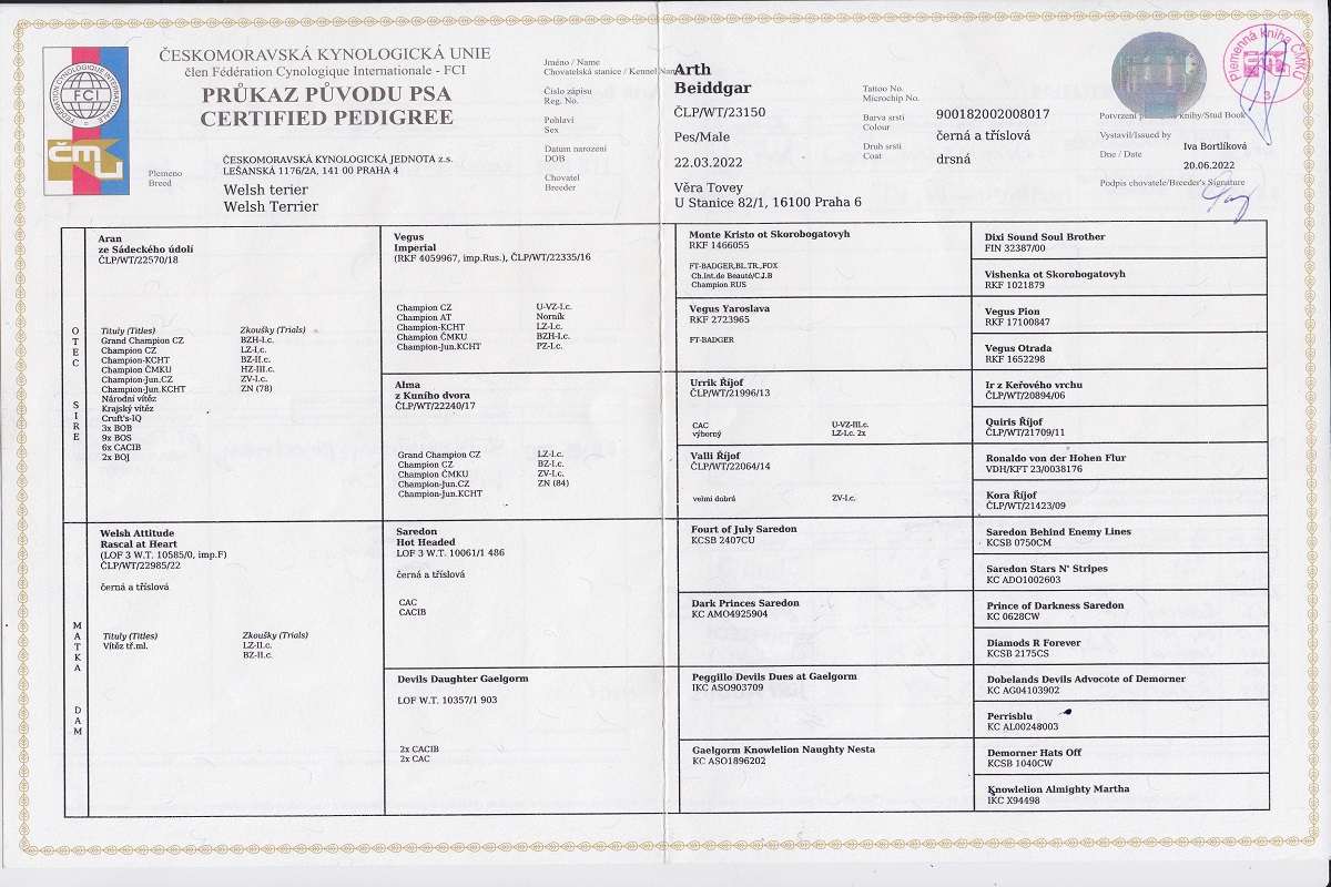 19.08.2023 | Mezinárodní (CACIB) Mladá Boleslav/CZ | Alexandra Grygarová/CZ | mezitřída | VD1 |