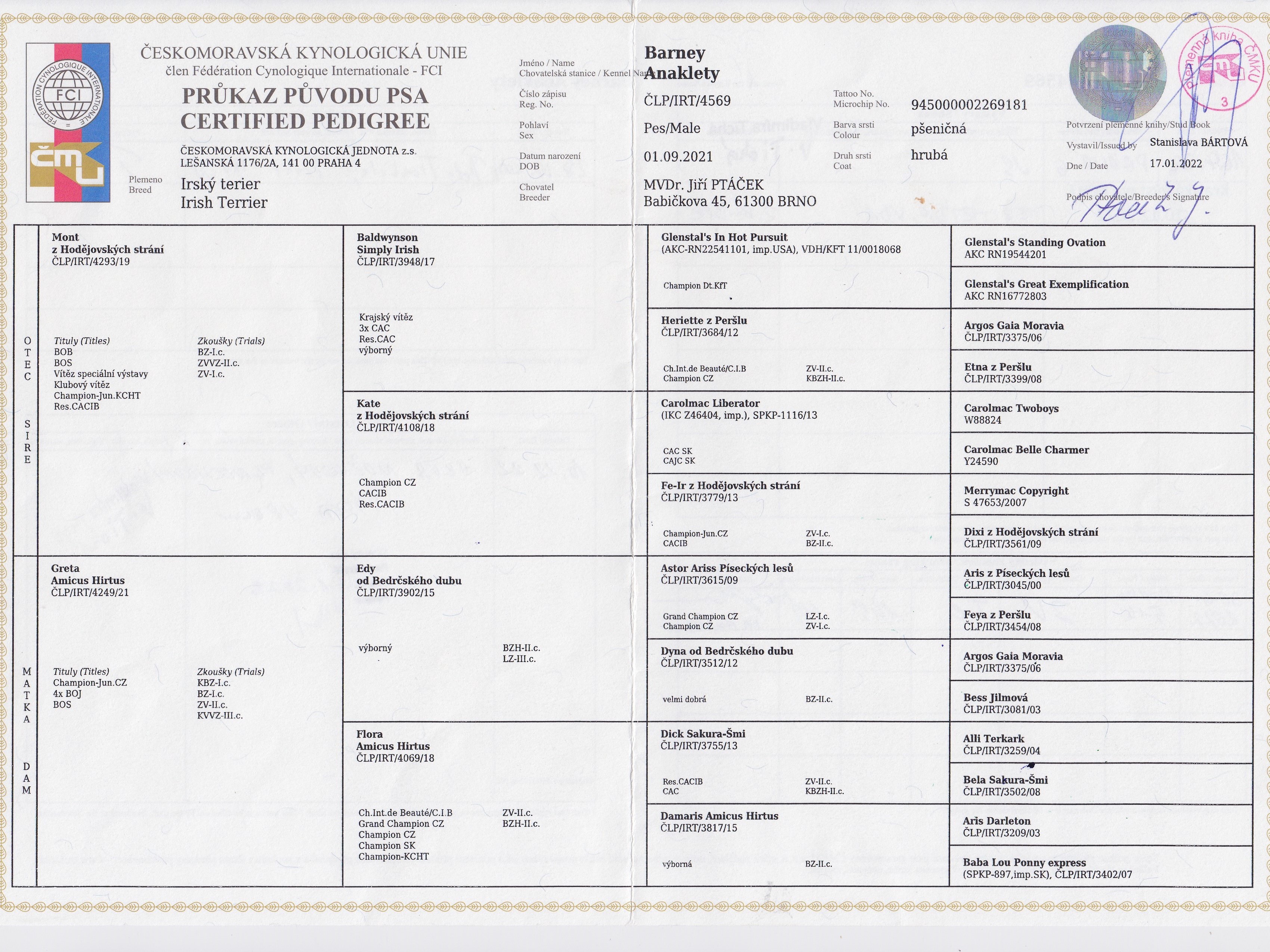 12.10.2024 | Mezinárodní (CACIB) České Budějovice/CZ | Miroslav Václavík/CZ | otevřená | VD1 |