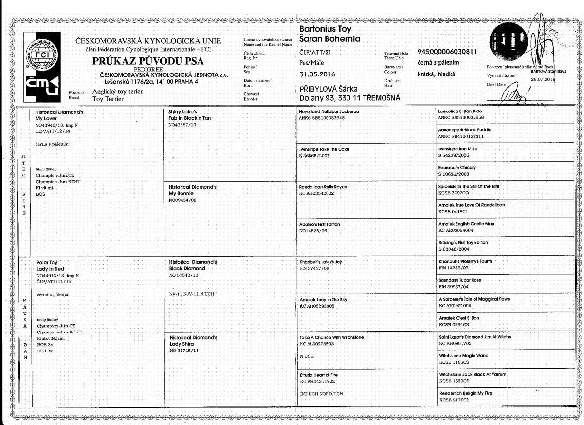 Vítěz třídy, klubový vítěz mladých, 3x CAJC, 2x CCJ, junior šampion ČR, 2x BOJ, 2x BOS, 2x BOB, krajský vítěz, CC
