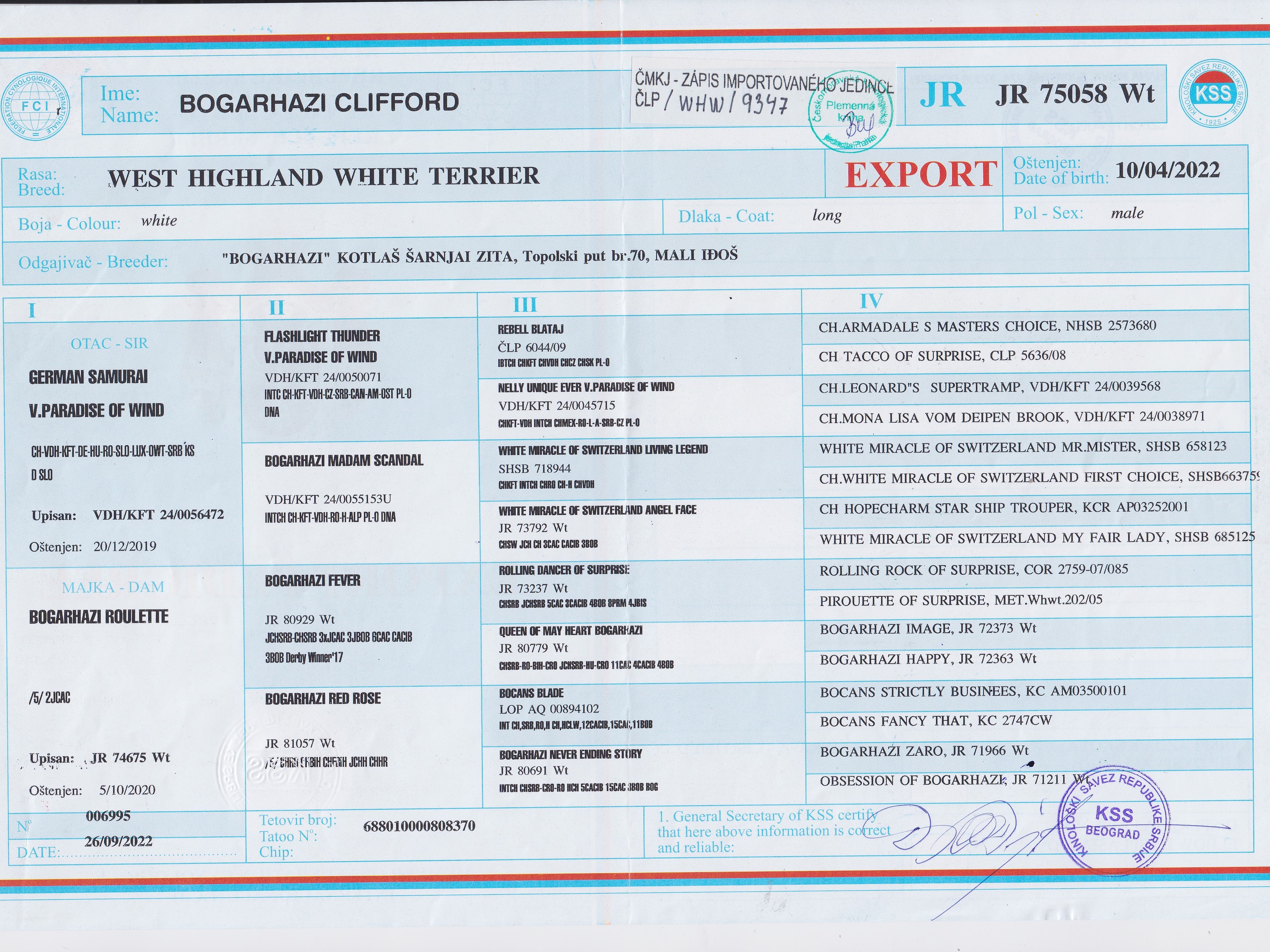 19.08.2023 | Mezinárodní (CACIB) Mladá Boleslav/CZ | Ladislav Frnčo/CZ | mezitřída | V1, CAC /4 b. |
