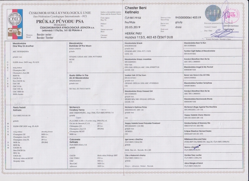 Vít.třídy mladých, CAJC,BOJ, 4x CAC, 2x CACIB, 2x BOS, BOB, Národní Vítěz, 3x r.CAC, r.CACIB, CH CZ