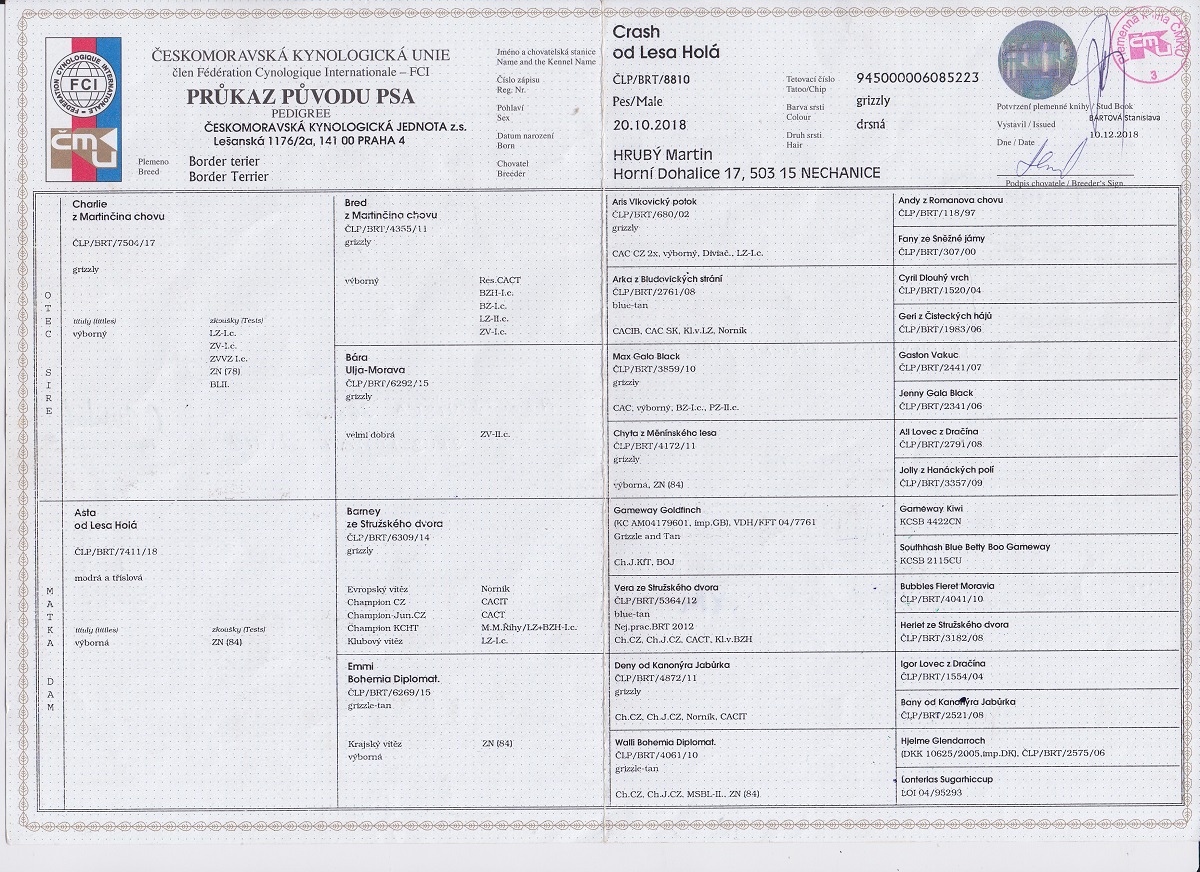 Datum | Výstava | Rozhodčí | Třída | Ocenění |