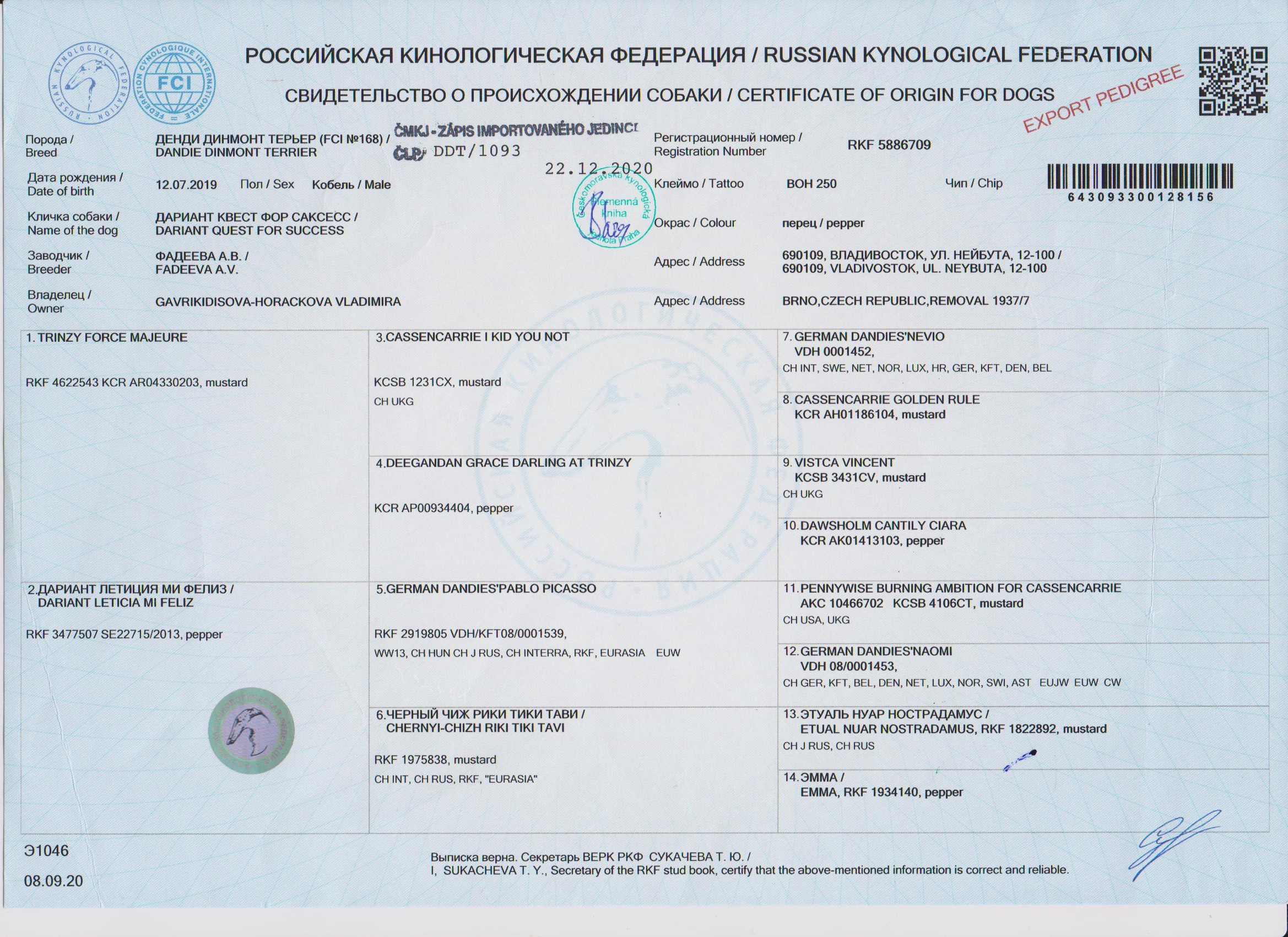 01.10.2021 | Světová (WDS) Brno/CZ | Milena Maršálová/CZ | otevřená | V1, CAC /4 b. |