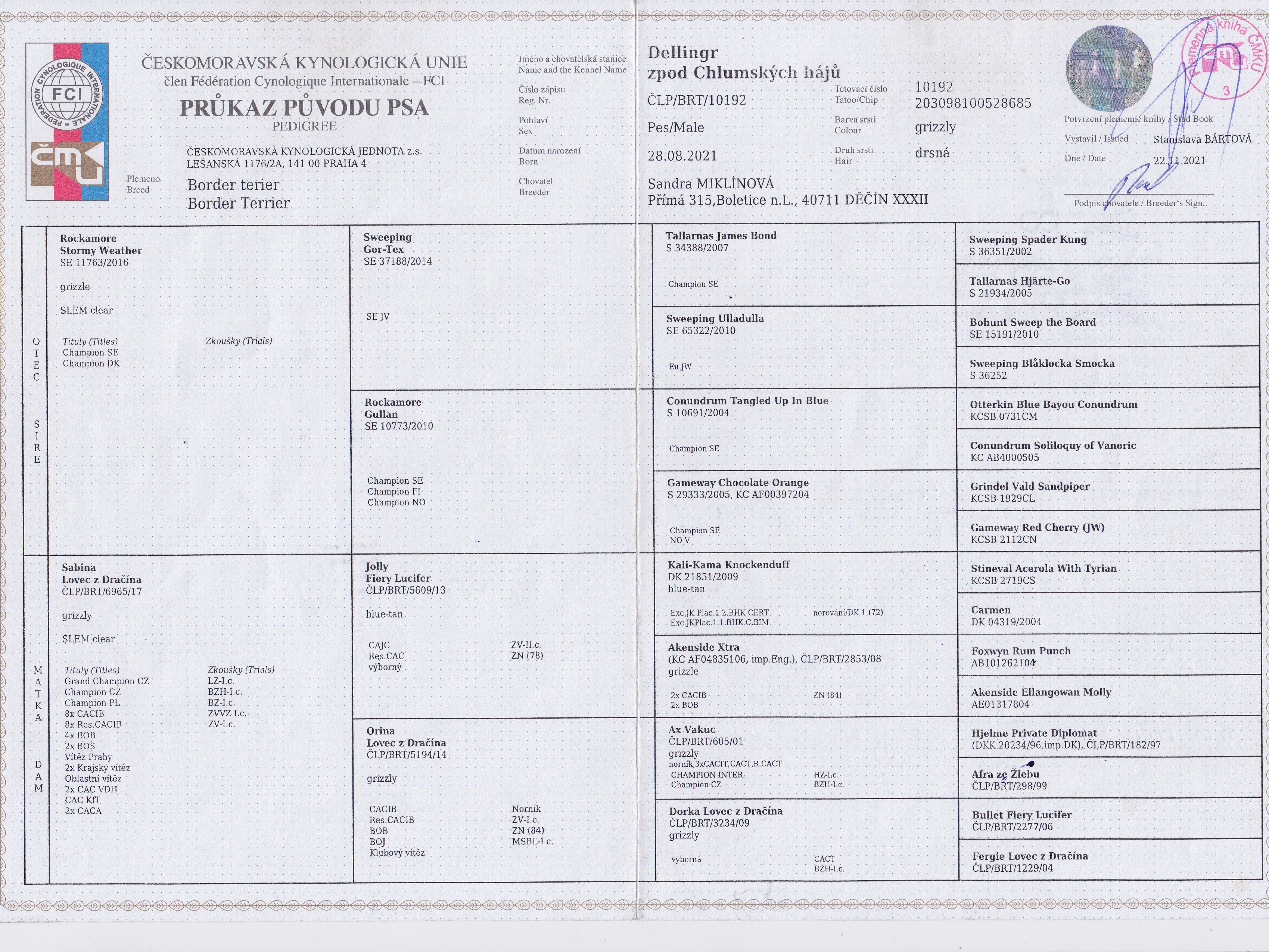 výborný,CIB, CIB-J, GrandChCZ, BiH, ChKCHT, ChSKCHTaF, ChČMKU, CZ, HR, BiH, Fed.BiH, SRB, JuniorChCZ, SLO, LUX, HU, SK