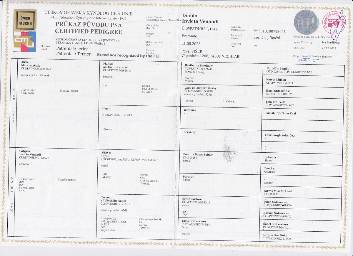 22.09.2024 | Klubová s KV České Budějovice/CZ | Peter Miller/AUS | mladých | V1, CAJC, CCJ, Klubový vítěz mladých, BOJ /6 b. |
