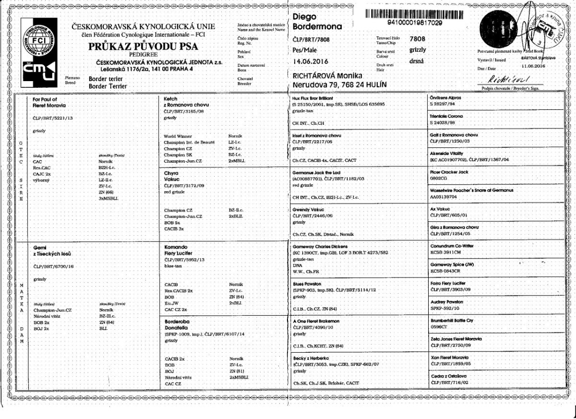 3xCAJC,3xCAC,2xCACIB,3xBOJ,4xBOB,Národní vítěz,Český junior šapion,Danubias vítaz,Klubový vítěz mladých,CCJ.EVROPSKA VYSTAVA POLSKO-V1-CWC