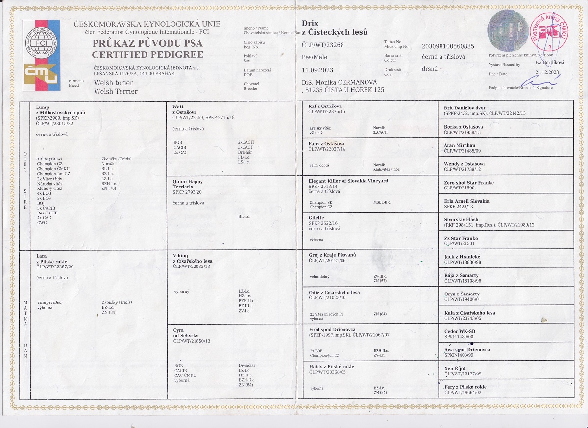 výborný,4x CAJC, JCH CZ, Vítěz speciální výstavy mladých, Klubový vítěz mladých, 2x CCJ,2x CACIB-J, JCH KCHT