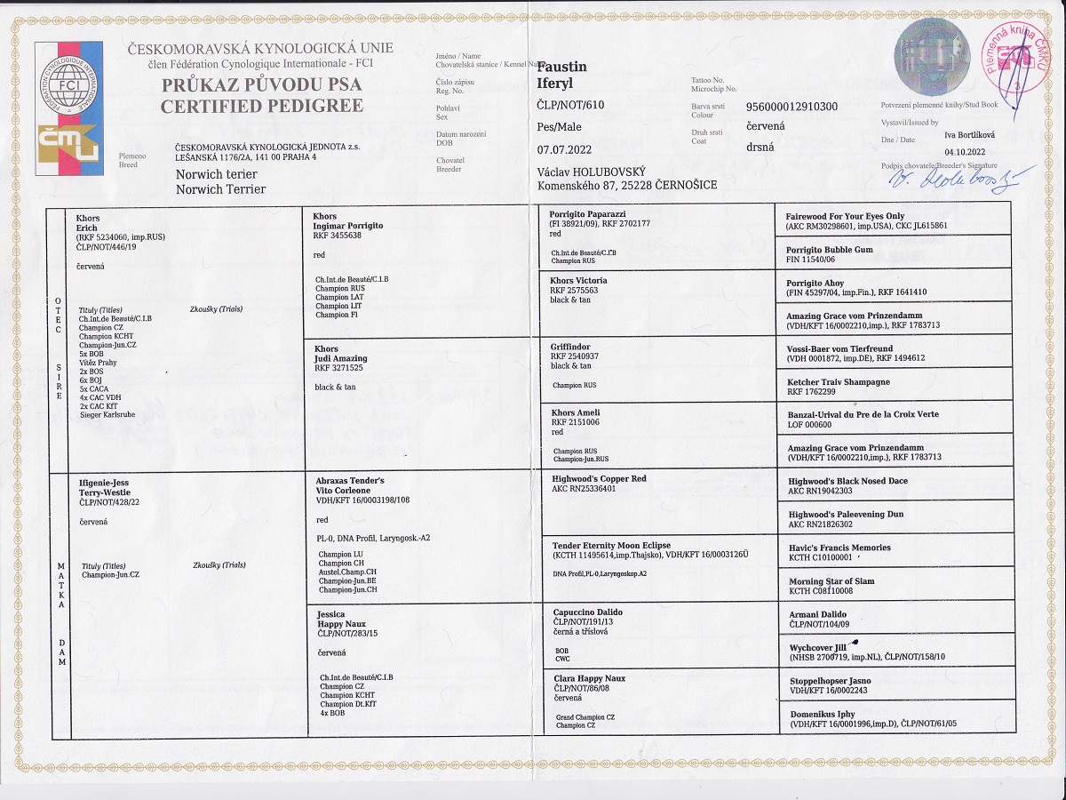 02.12.2023 | Národní (CAC) Brno/CZ | Pavol Seman/SK | mladých | V1, CAJC, BOJ /6 b. |