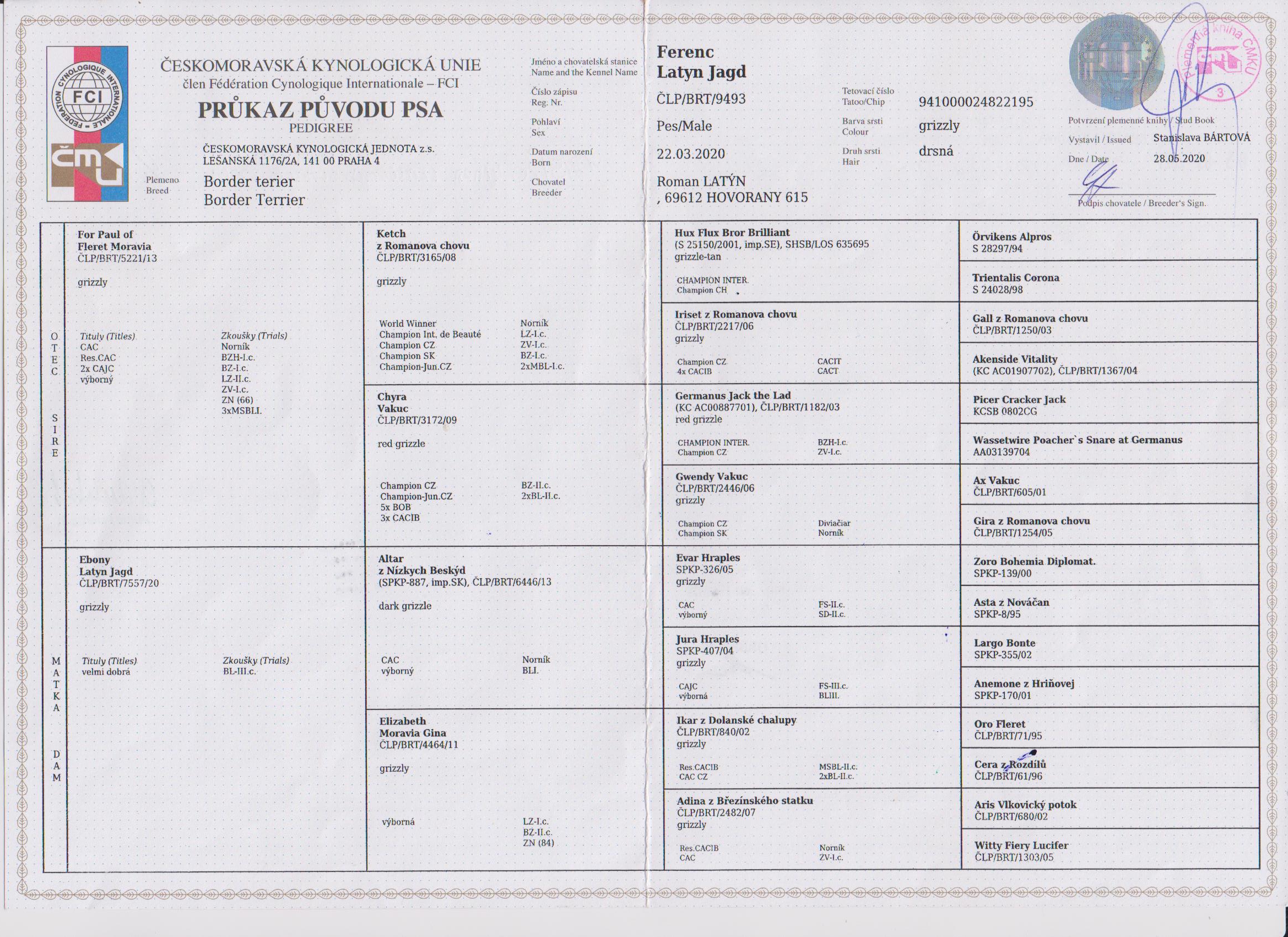 Datum | Výstava | Rozhodčí | Třída | Ocenění |