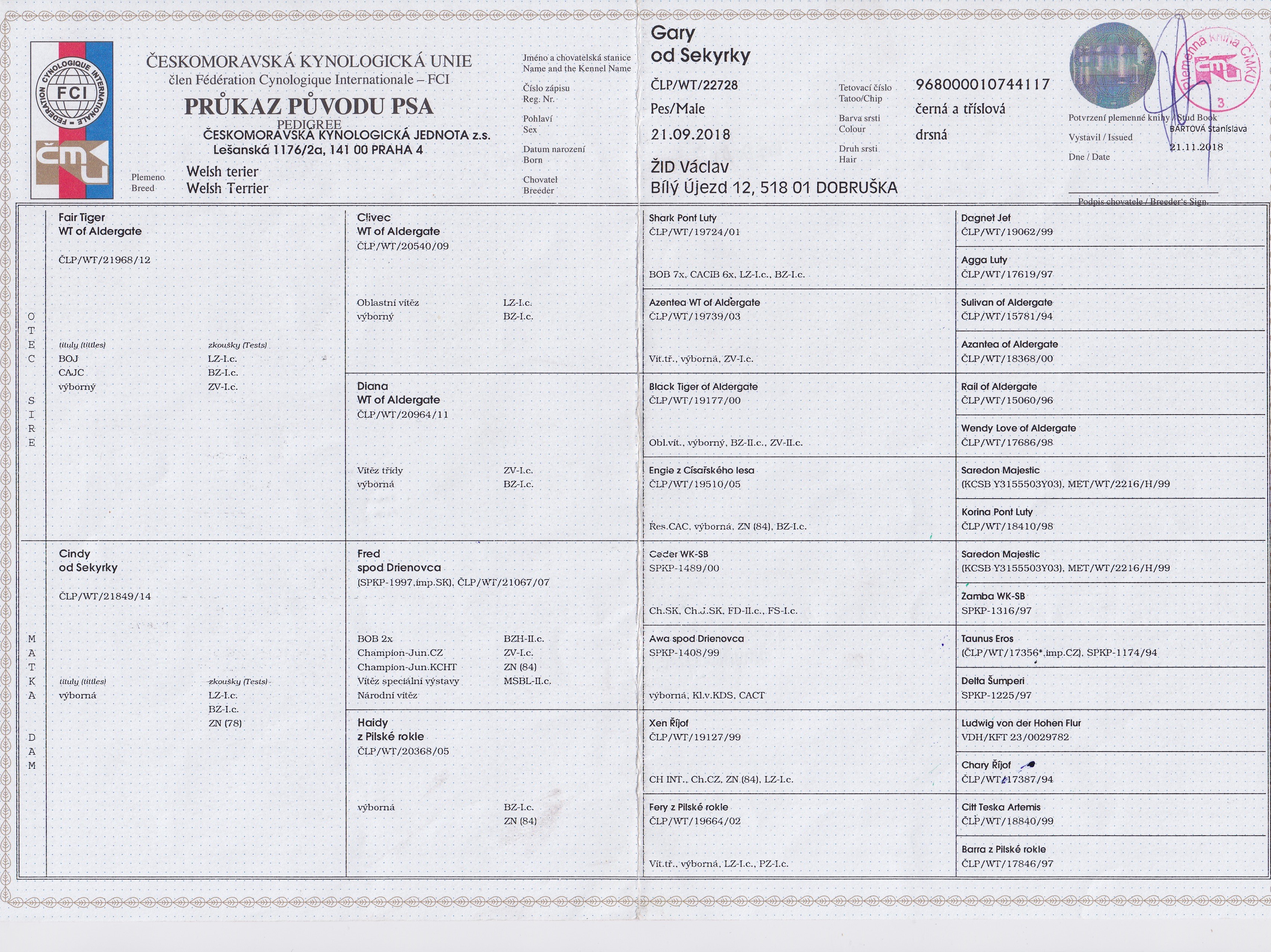 výborný, Vítěz třídy, Krajský vítěz, CC, 2x CAC, R.CACIB, CACIB, BOS