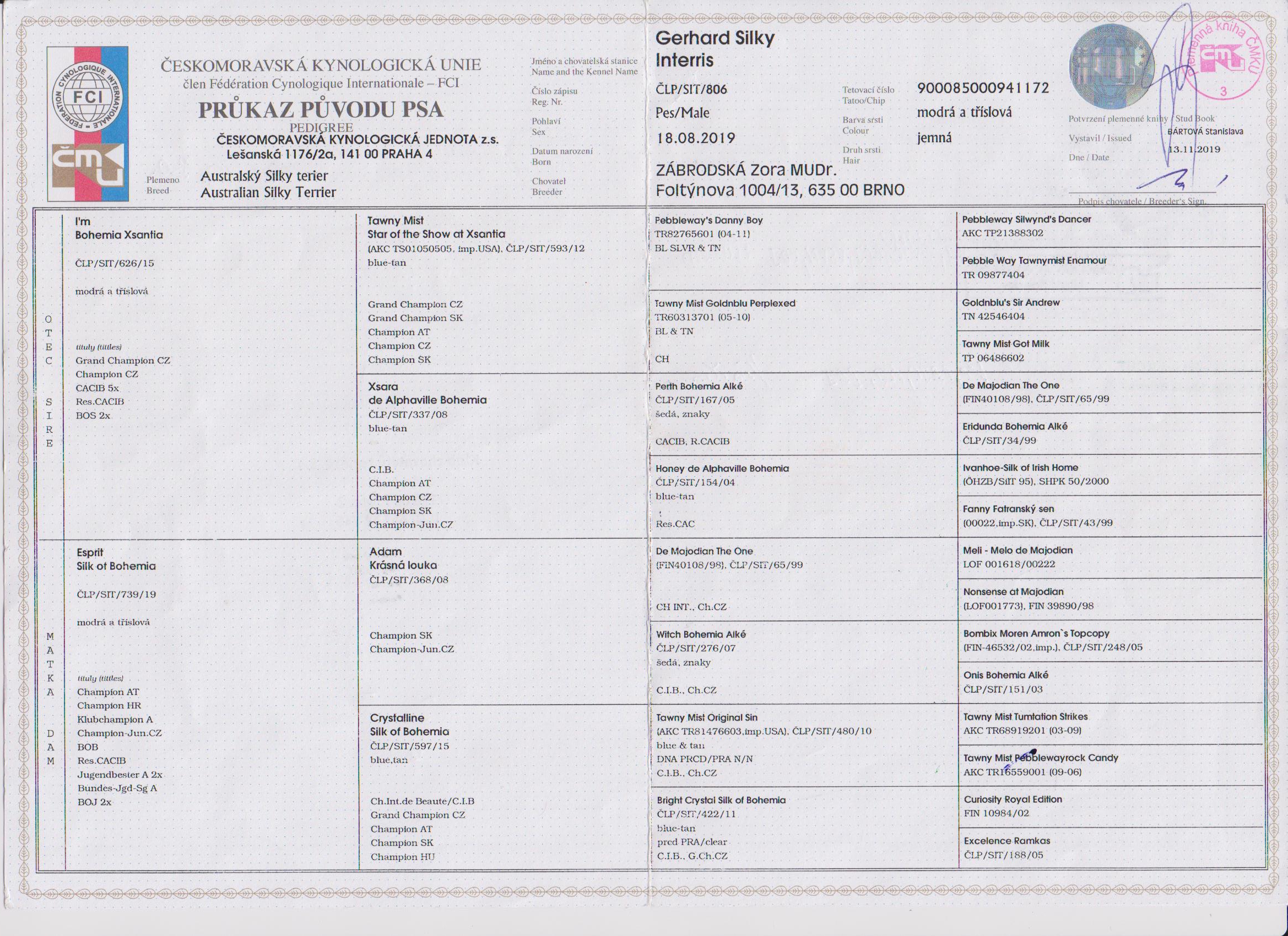 výborný, JCH CZ, 3x BOJ,3x CAJC, 4x CCJ, Teriér roku 2020 3.místo