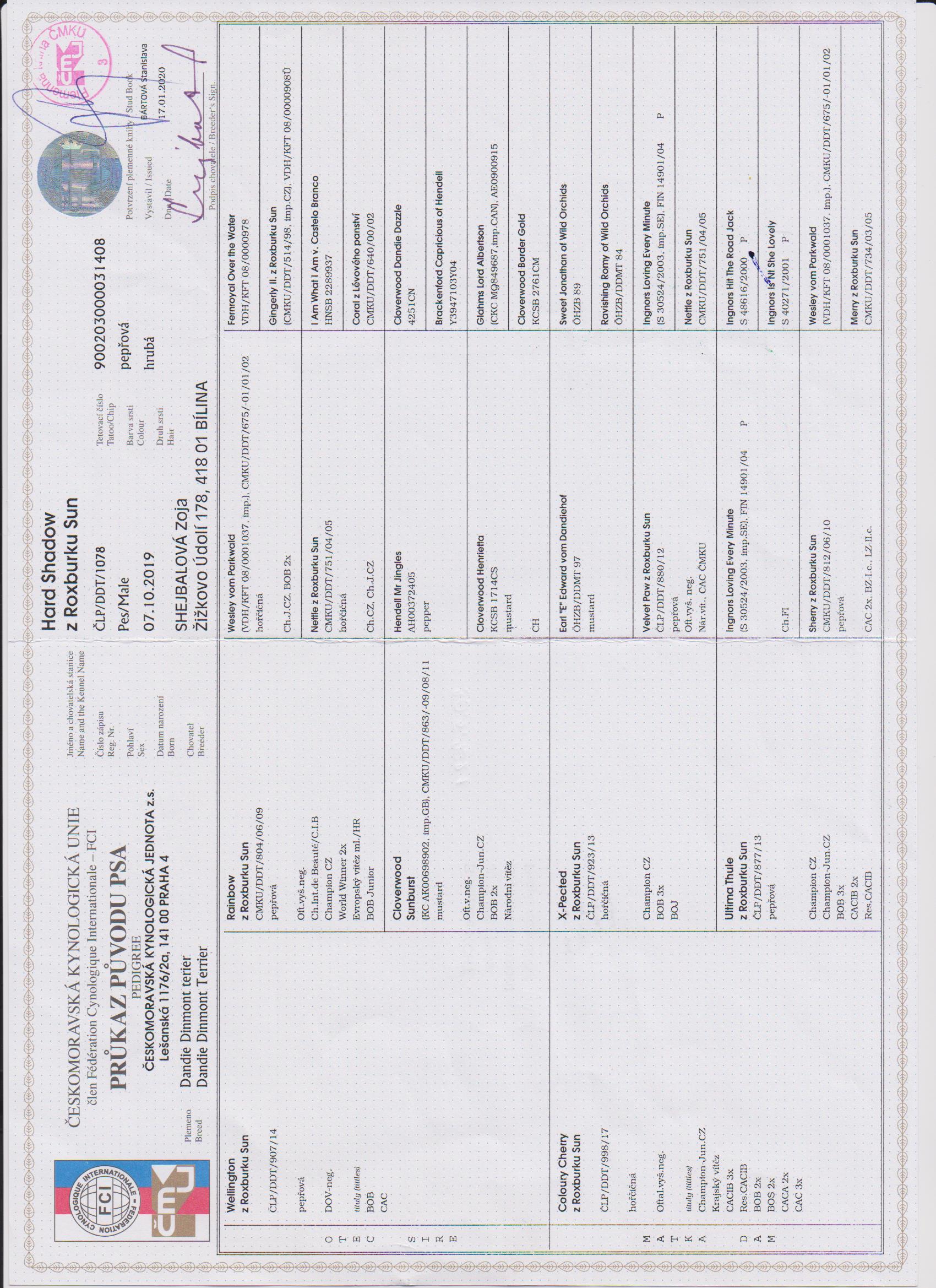 01.10.2021 | Světová (WDS) Brno/CZ | Milena Maršálová/CZ | mezitřída | V1, CAC, CACIB, World Winner, BOB /10 b. |