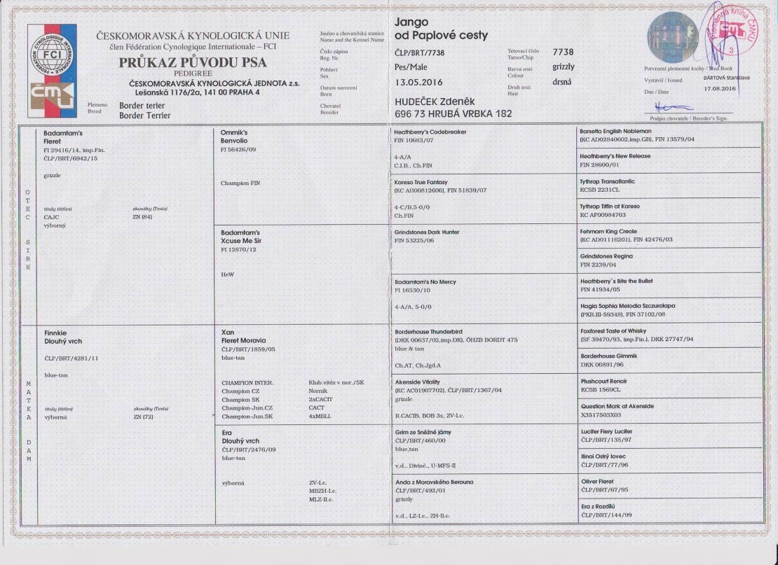 Datum | Výstava | Rozhodčí | Třída | Ocenění |
