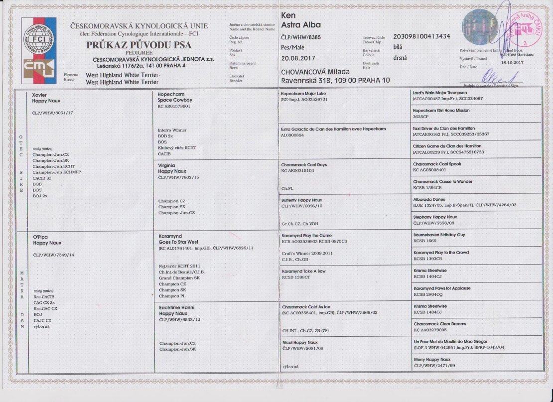 CAJC, CCJ, Klub.vít.mladých, 5x CAC,CACIB,r.CACIB, JCH CZ