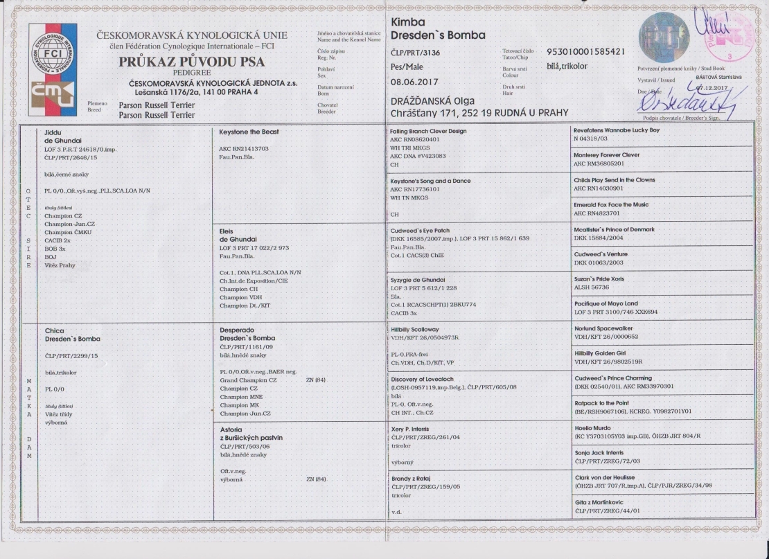 2x CAJC, 2x BOJ, JCH CR, 2x CAC,2x r.CAC, r.CACUIB, CACIB, BOS, BOB