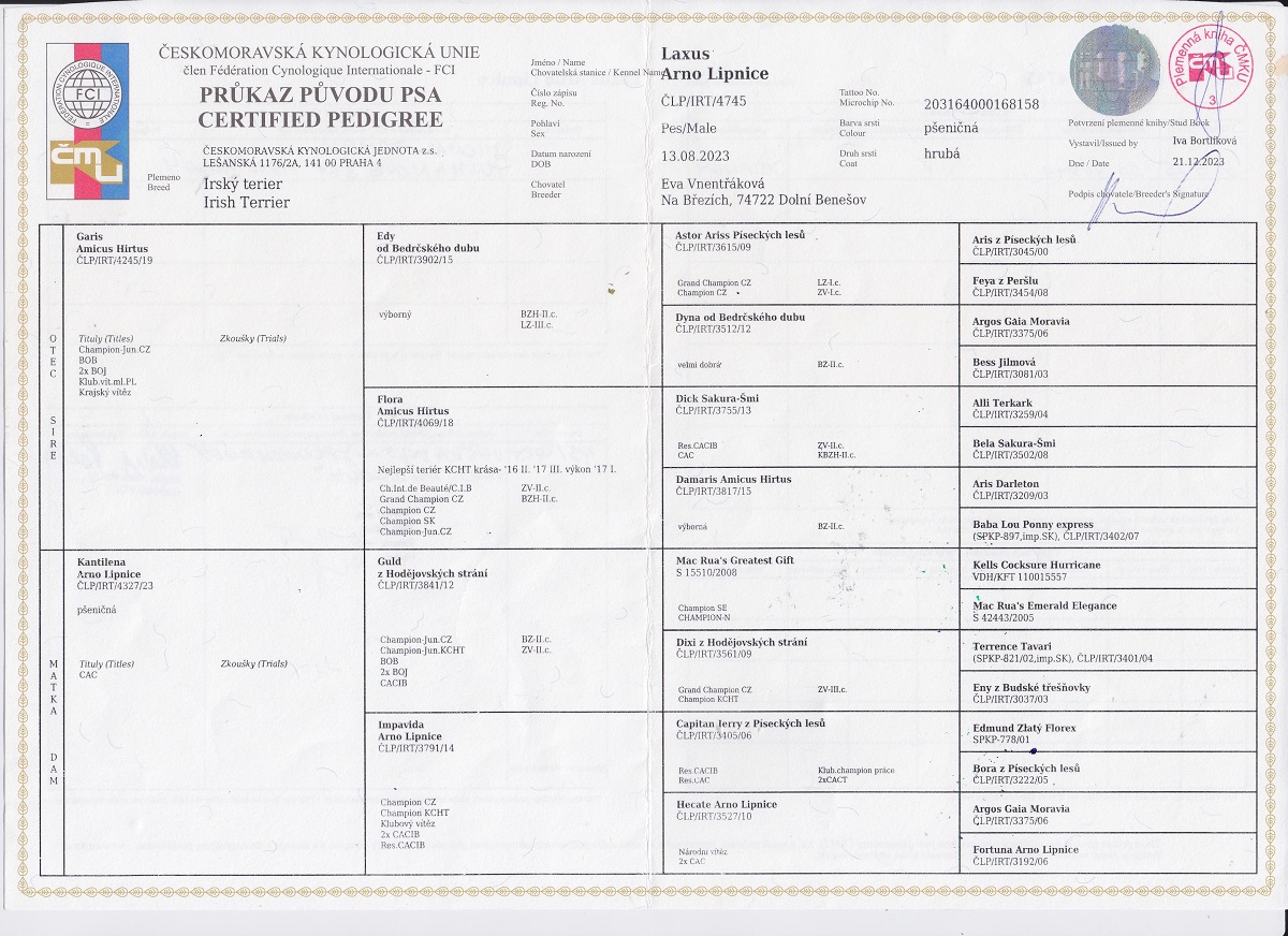 Datum | Výstava | Rozhodčí | Třída | Ocenění |