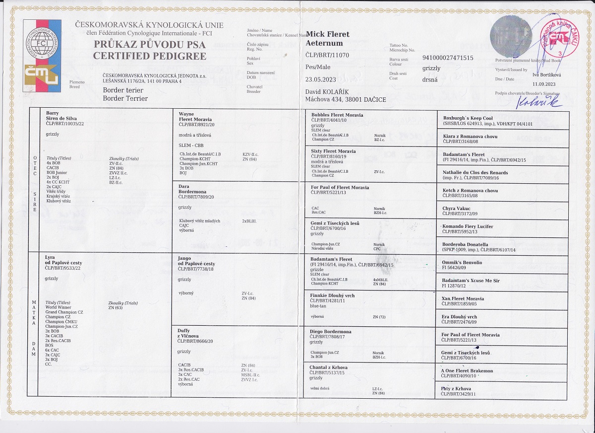 29.11.2024 | Mezinárodní (CACIB) Praha/CZ | Malgorzata Wieremiejczyk - Wierzchowska/PL | mezitřída | V1 |