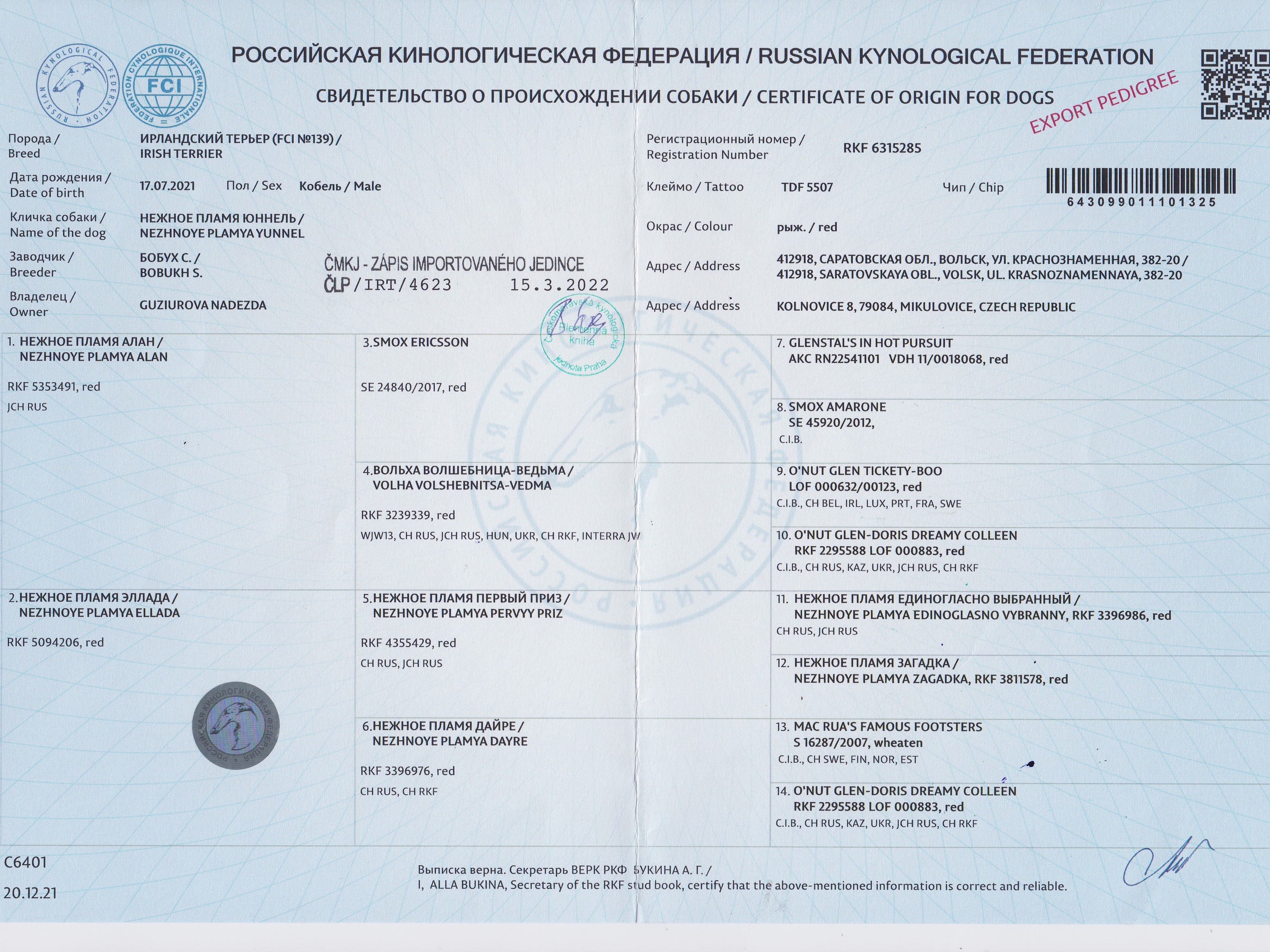 09.09.2023 | Mezinárodní (CACIB) Olomouc/CZ | Miroslav Václavík/CZ | otevřená | VD1 |