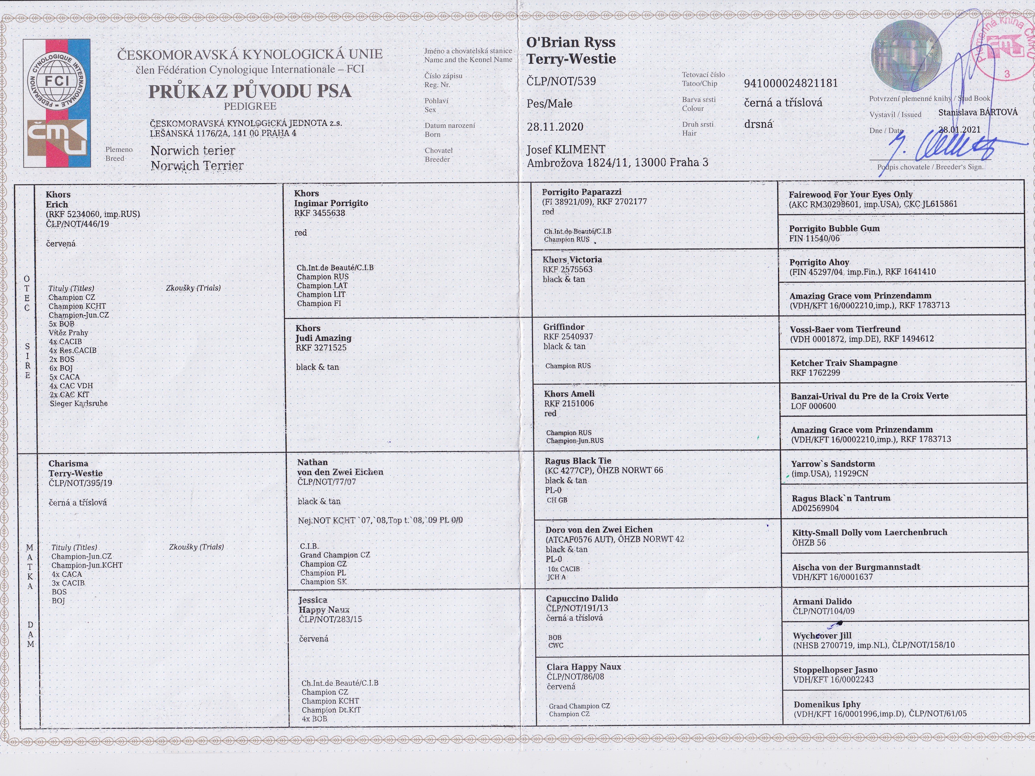 Datum | Výstava | Rozhodčí | Třída | Ocenění |