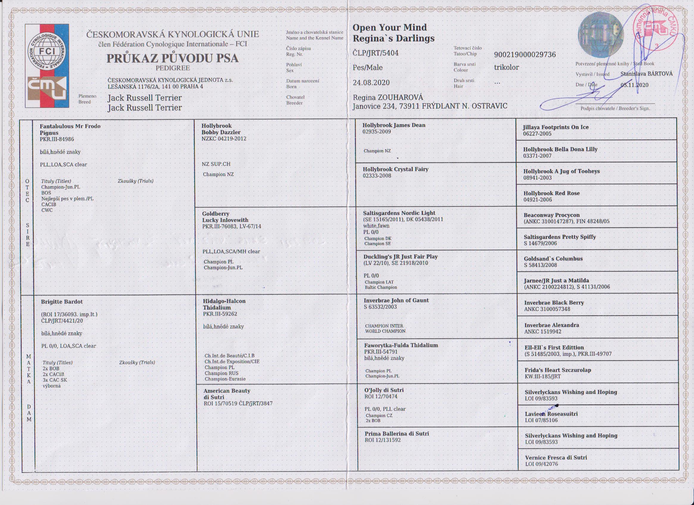 výborný, JCH CZ,JCH SK, JCH POL, kvalifikace Cruft´s, 9 x CAJC , 6x BOJ,3x BOS,3 x BOB, BOG 2. Grand Prix Junior winner 2021,, Derby winner SK 2021