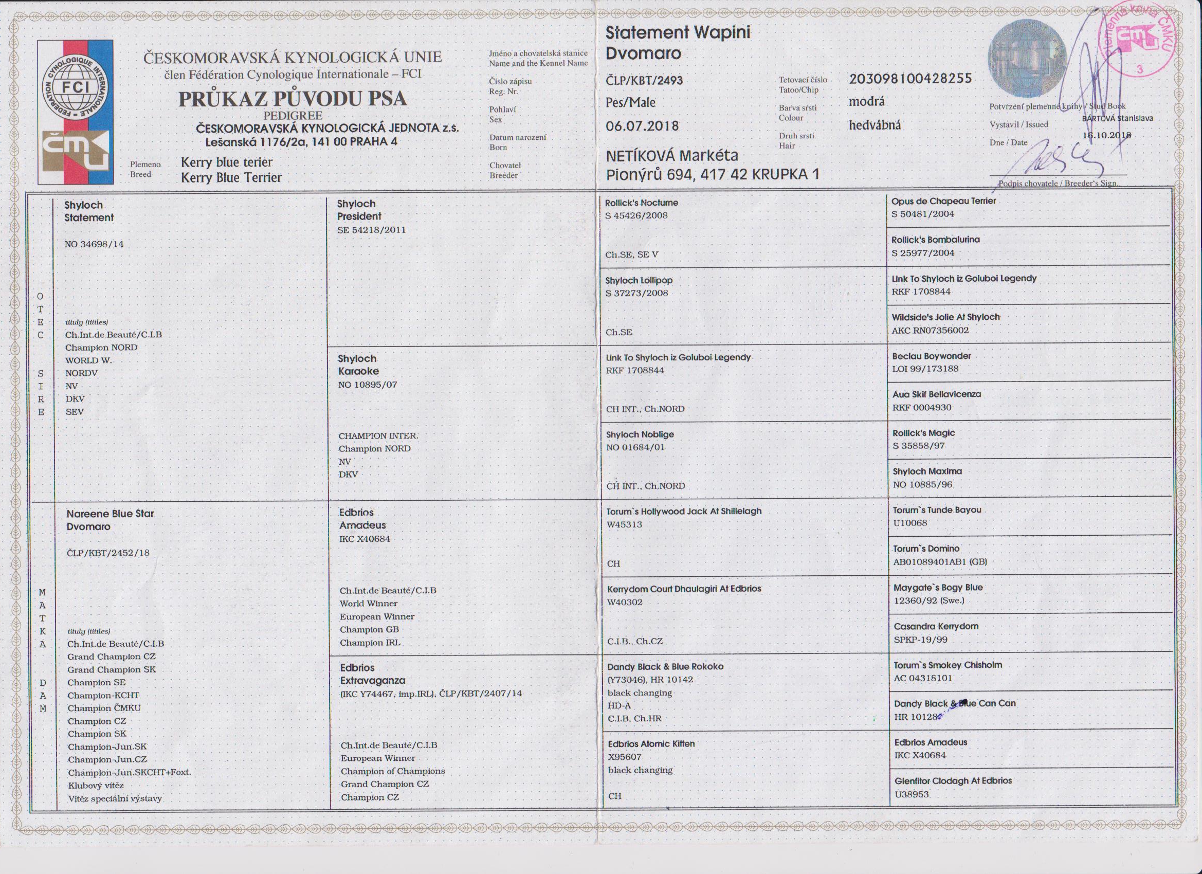 09.09.2023 | Mezinárodní (CACIB) Olomouc/CZ | Jakub Kruczek/PL | šampionů | V1, CAC, CACIB, BOB /10 b. |