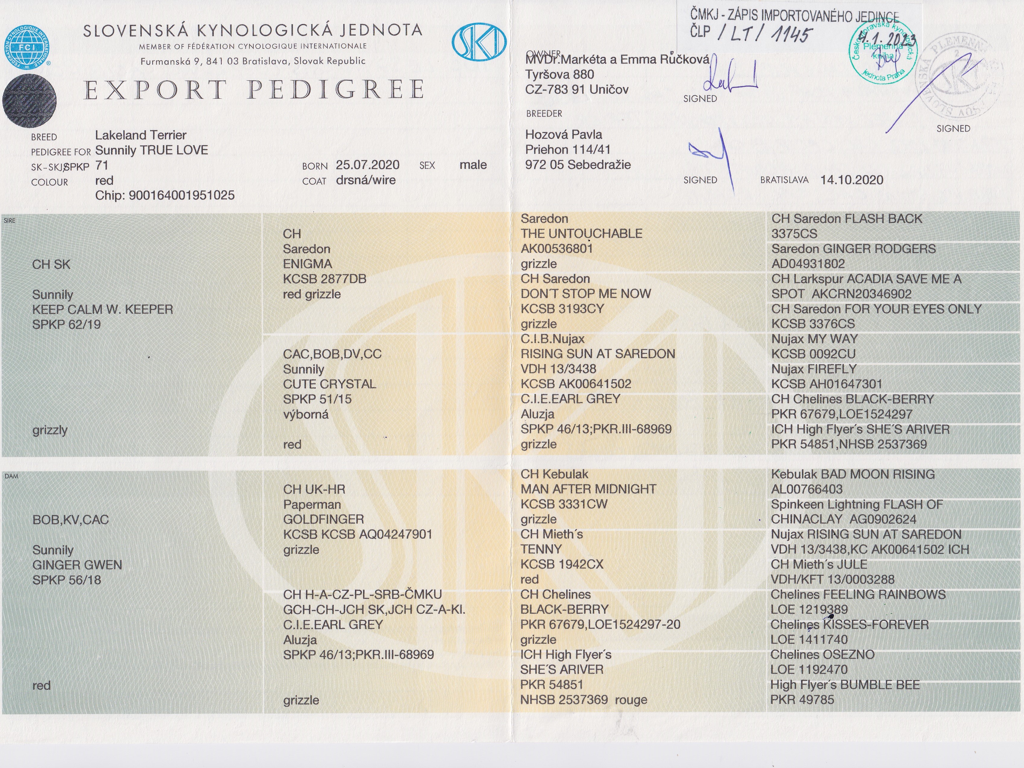 03.09.2022 | Národní (CAC) Olomouc/CZ | Dalibor Smékal/CZ | otevřená | V1, CAC, Národní vítěz, BOB /10 b. |