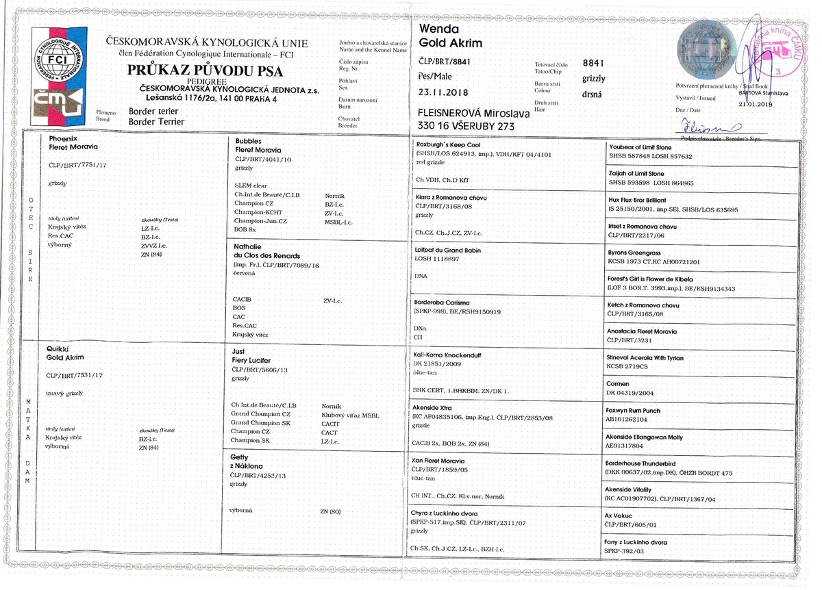 17.07.2021 | Národní (CAC) Mladá Boleslav/CZ | Jana Daňková/CZ | otevřená | V1 |
